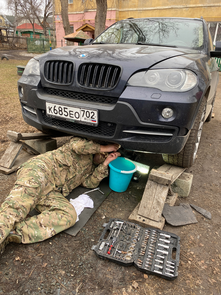 После работы поехали опять чинить машину. Вот уже реально и смех и грех.