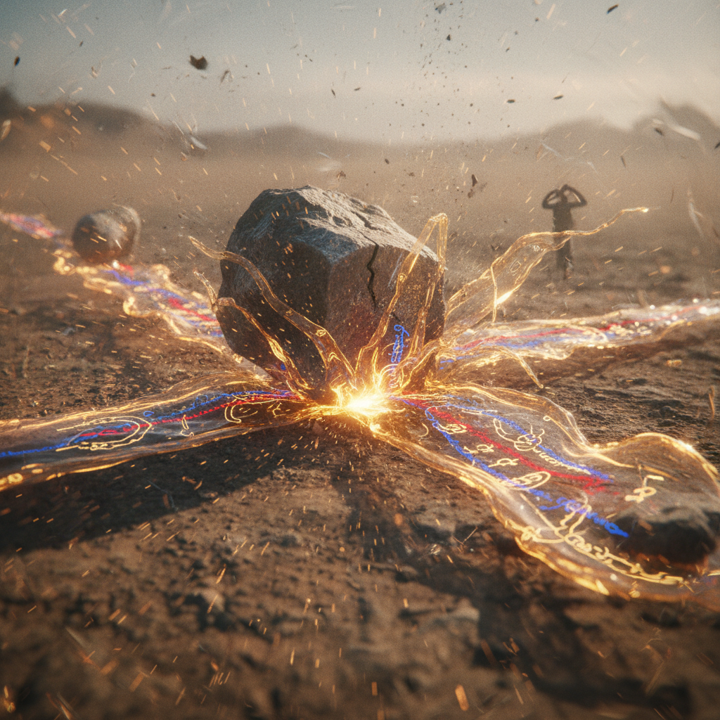 Камень упал. В тот момент, когда он ударился о землю, со мной случилось **смещение**. Воздух стал вязким, как мёд. Я увидел не просто падение. Я увидел, как от камня во все стороны, словно медленные круги по воде, пошли волны… чего-то. Не звука. Не света. **Намерения**. Решения гравитации притянуть. Решения камня — сопротивляться и дробиться. Решения скалы — принять удар. Это длилось мгновение, но я успел заметить, что эти волны шли не только в пространстве, но и *во времени* — эхо удара тянулось и в прошлое (причина броска), и в будущее (трещина в камне, моё воспоминание об этом).