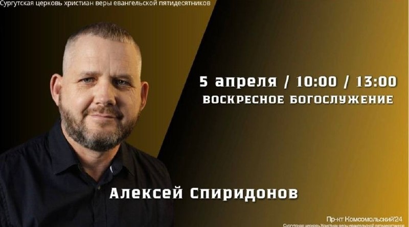 ! 📅 05.04.2026 🟡10:00 🟡13:00 📍Сургут, пр-т Комсомольский 24 📎 Алексей Спиридонов ✝️Обратите внимание ➡️ Время служения 10:00 - общецерковное и детское служение. 13:00 - общецерковное и подростковое служение. Rutube канал ВК страница церкви Не забудьте подписаться ✍️