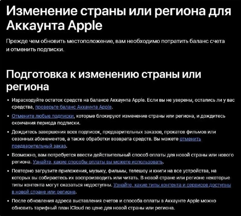 Теперь это можно сделать даже с активными подписками и без привязки нового способа оплаты, при этом единственное условие — нужно обнулить баланс Apple ID или потратить все деньги перед сменой региона Telegram | Дзен | MAX
