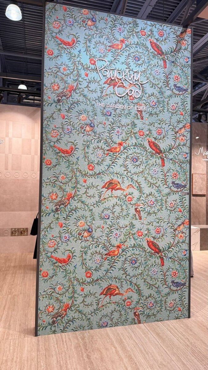 Отчетное сообщение Анастасии Скакун - ведущего дизайнера студии Ольги Земляной: В целом выставка мне показалась каким-то дежавю с прошлого года. Много китайских производителей, много индийского производства. Я не скажу, что как-то восхищена — мне она не особо понравилась, мало чего нового для себя нашла. Поэтому не знаю, как Артдом, так и MosBuild в этом году — они какие-то очень простые. Наверное, это всё-таки вопрос текущих реалий экономики. Керамика Я заметила, что всё больше и больше появляется травертин — нежный, в песочных оттенках. Классные коллекции, как всегда, у Atlas Concorde и Kerama Marazzi. Ещё понравилась мелкоформатная плитка у Laparet — у них прям большая коллекция появилась. Либо я раньше не видела, либо они её сейчас сильно расширили. В принципе, у многих производителей — у Kerama Marazzi, Laparet и у индийских производителей — есть мелкоформатная плитка с разными геометрическими узорами. Я заметила, что её становится всё больше. У Kerama Marazzi очень интересные б