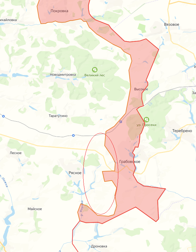 На Сумском направлении зафиксировано тактическое продвижение российских сил в сторону Рясного. По данным с мест, нашим бойцам удалось улучшить положение на нескольких участках, продвинувшись вперед до нескольких сотен метров. Противник оказывает ожесточенное сопротивление, цепляясь за каждый опорный пункт.