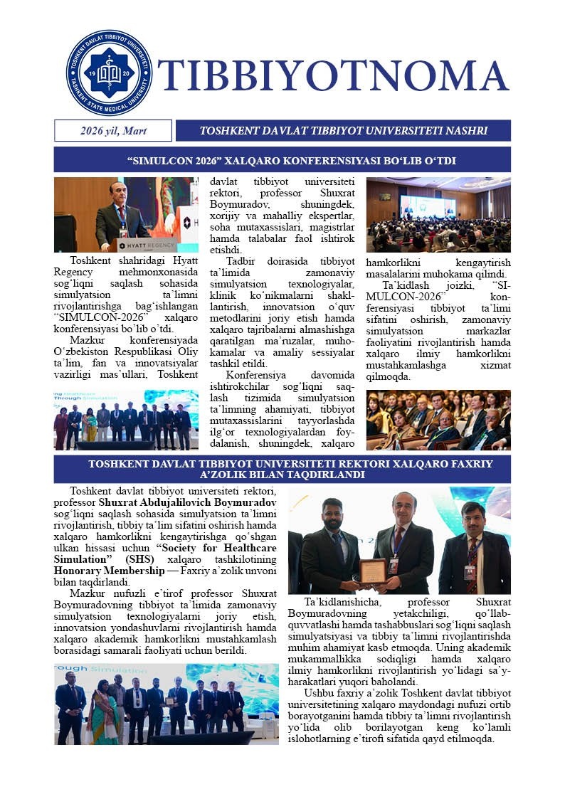 "Tibbiyotnoma" gazetasining navbatdagi 2026-yil, MART soni nashrdan chiqdi
