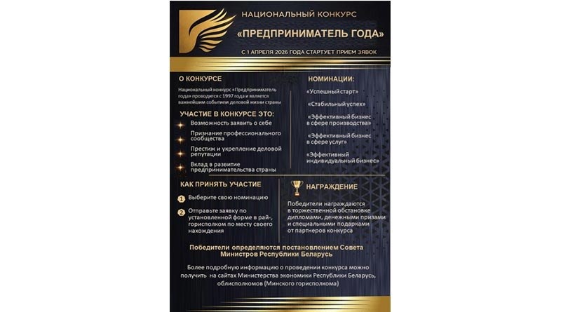 Принимаются заявки на участие в Национальном конкурсе «Предприниматель года». Посмотреть