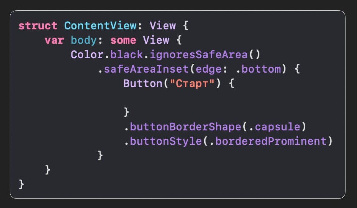 Самый простой способ разместить кнопку внизу экрана - использование safeAreaInset