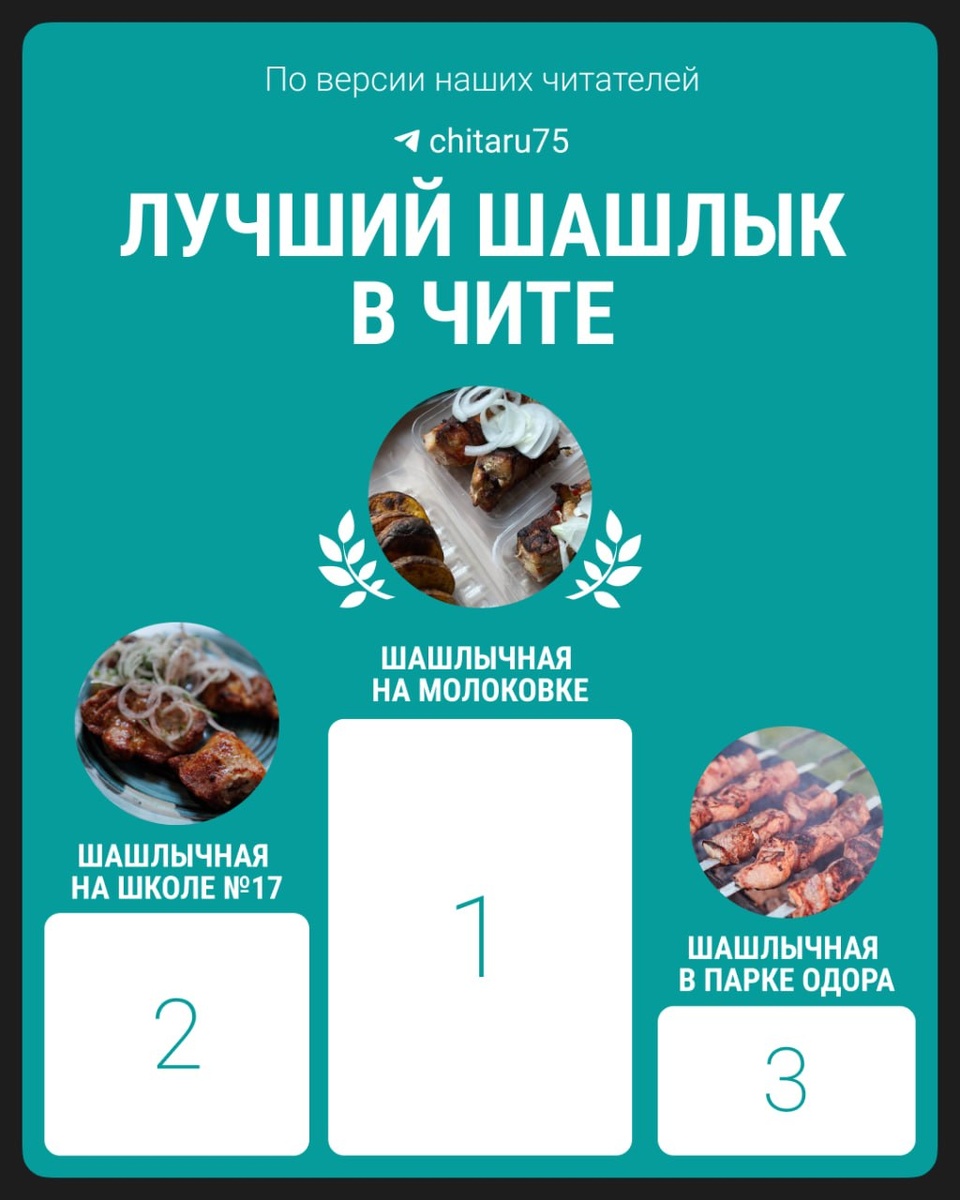 Самый вкусный шашлык в Чите выбрали читатели @chita.ru! Первое место с большим отрывом забрала шашлычная на Молоковке, на второе и третье место забайкальцы поставили шашлычные в районе школы №17 и в парке ОДОРА. Как распределили остальные голоса — смотрите здесь. Кажется, теперь мы знаем, как вы проведёте субботний вечер. 📌📌📌📌📌 «Чита.Ру» в MAX