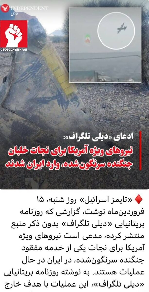 Daily Telegraph пишет, что американские силы специального назначения заходили на территорию Ирана, чтобы найти и эвакуировать члена экипажа сбитого истребителя, который числился пропавшим без вести. (Independent Persian)