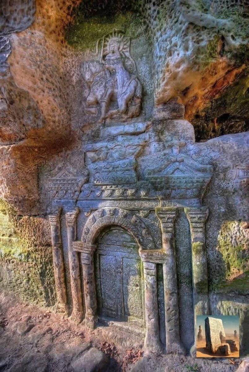 Всадник над дверью олицетворяет бога солнца. Это мог быть Гелиос.