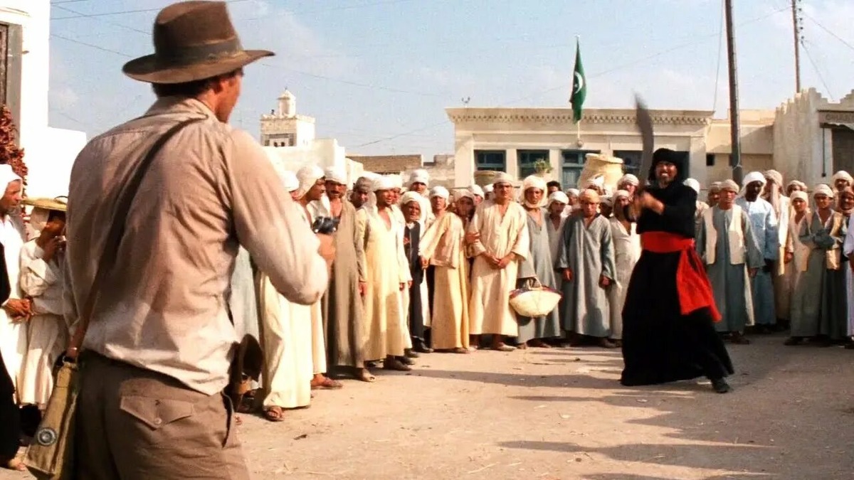 Вы наверняка помните этот момент. Шумный базар в Каире. Противник с огромным мечом, который крутит им с профессиональным изяществом. Индиана Джонс устало смотрит на это представление — и просто достает револьвер и стреляет. Пауза. Лицо убийцы. Зритель смеется. Эта сцена стала визитной карточкой не только персонажа, но и всего жанра приключенческого кино. Но вот что вас шокирует: этой сцены вообще не было в сценарии. А то, что вы видите на экране — это чистая импровизация, рожденная из физического страдания актера. По первоначальному замыслу сцена в каирском базаре должна была стать техническим шедевром. Сценарий предусматривал сложнейший поединок на мечах между Индианой и его противником. Хореографию репетировали несколько недель. Съемки были заложены на три полных дня. На площадку привезли специальные мечи, каскадеров, постановщиков боев. Спилберг хотел показать, что его герой может побеждать не только умом, но и в честном бою. Планировались эффектные удары, блоки, кульбиты — всё, как