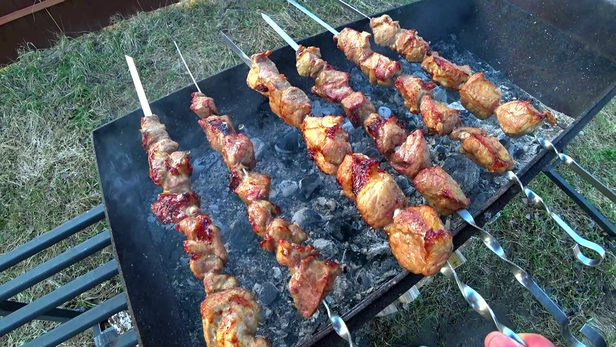 Сегодня открываем сезон шашлыка. Расскажу, как приготовить вкусный и сочный шашлык с быстрым маринадом – всего за пару часов. Если вы любите шашлык, то этот рецепт вам точно понравится. Сохрани рецепт, чтобы не потерять! Ингредиенты: Свиная шея - 2 кг; Лук репчатый - 2-3 крупные луковицы; Сок половины лимона; Соль крупная поваренная - 3 ч.л; Перец черный молотый - 1 ч.л. Мясо нарезаем на порционные куски. Не стоит слишком мельчить, иначе шашлык получится сухим. И не слишком большие куски, иначе шашлык сверху быстро приготовится, а внутри будет сырым. Кусочки шашлыка должны быть на 2-3 укуса. Такой маринад для шашлыка на луковом соке получается очень мощный и быстрый. Достаточно буквально пары часов, чтоб шашлык хорошо промариновался. Убирать в холодильник не надо. Но можно и оставить мариноваться такой шашлык на ночь - хуже не будет, в этом случае убираем его в холодильник. Через 2 часа разжигаем уголь. Нанизываем шашлык на шампуры. Стараемся на один шампур выбирать одинаковые куски, ч
