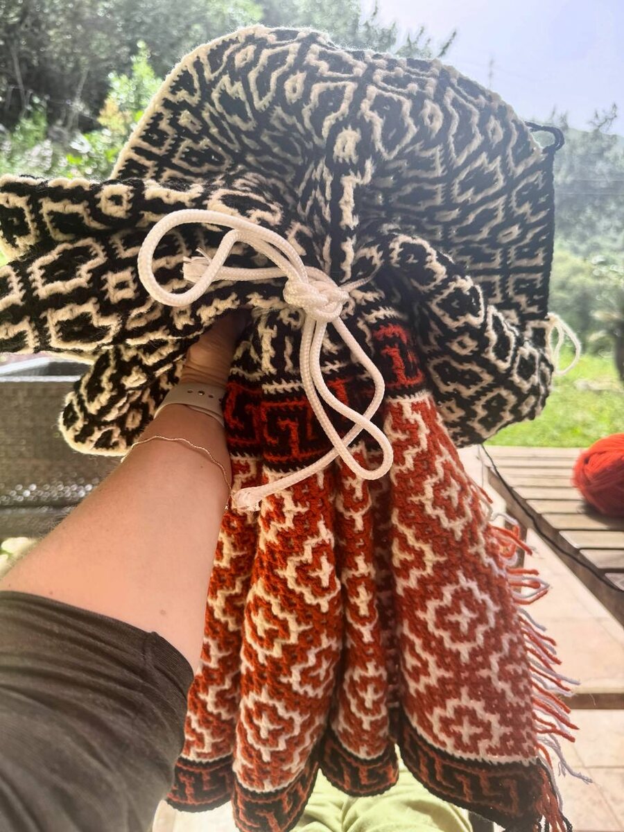 Попробовала способ «укрощения» большого полотна — собрала плед букетом и перевязала. Так, и правда, не так жарко под ним и меньше времени уходит на перебор полотна в процессе вязания ряда. А что у вас в работе сейчас?