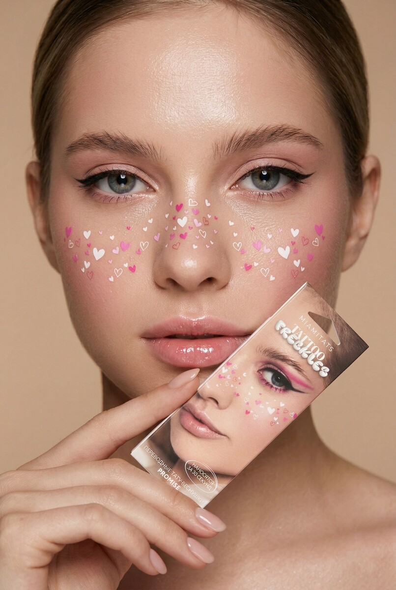 MIAMITATS Promise — это не история про «обычные» естественные веснушки, а скорее про деликатный декоративный акцент для лица. У этого варианта настроение мягкое, романтичное и немного сказочное: он добавляет образу легкую игру, но не уводит его в слишком театральную или перегруженную сторону. Формат переводных тату-веснушек делает продукт чем-то средним между макияжем и face accessory — быстрым, заметным и очень фотогеничным. Главный плюс такого продукта — скорость и низкий порог входа. Не нужно рисовать симметрию вручную, подбирать кисти или долго наслаивать декор: эффект получается быстро, а выглядит при этом аккуратно и цельно. Особенно хорошо Promise работает в тех образах, где хочется добавить лицу немного сияющей наивности, нежности и fashion-настроения — для съемки, вечеринки, фестивального макияжа, reels, сторис или просто контента «под настроение». ЗАКАЗАТЬ Визуально Promise выглядит как очень удачный вариант для тех, кому нравятся не грубые акценты, а более воздушная, почти ж