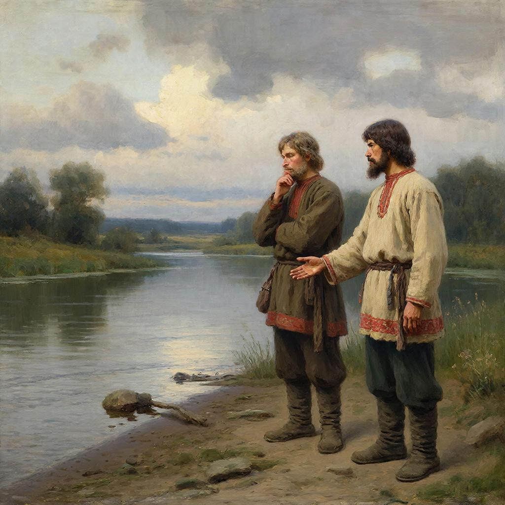 Жили-были два друга, которые решили отправиться в долгое путешествие. Оба были молоды, полны надежд и мечтали увидеть мир. Дорога их вела через леса, поля и горы, пока однажды не привела к широкой и бурной реке.
