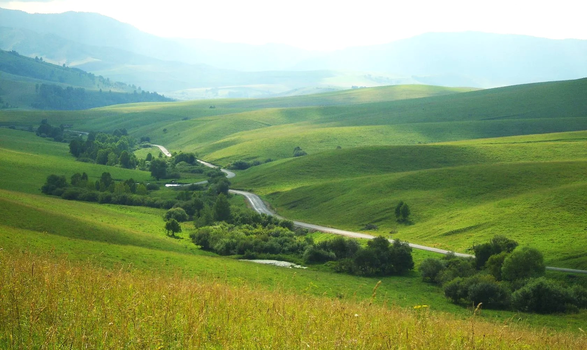 Сидя на своём коронном месте, на мотоцикле позади Георгия, Катя, вновь, как и раньше, с удовольствием рассматривала набегающие и остающиеся позади разнообразные картинки алтайской природы. В основном, с обеих сторон дорогу окружали горы, подчас высокие и крутые, чередующиеся с пологими пригорками. На тех и других березки с молодыми лиственницами соседствуют. Дружно, видать, живут рядышком, не мешая, друг дружке. Не жадничают, не стараются занять собой всё пространство, оставляют обширные участки и для сенокосных угодий.