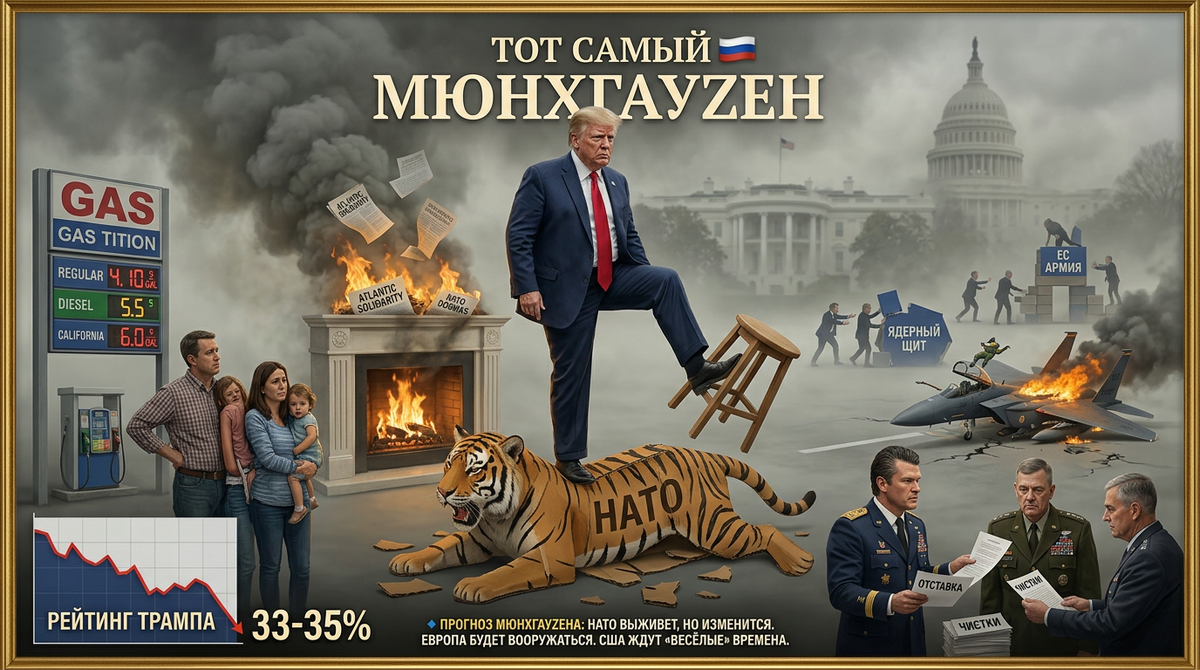 Итак, что же мы имеем на выходе? Соединённые Штаты, «мировой жандарм» и «оплот демократии», погрязли в трёх кризисах сразу: политическом (развал команды Трампа), военном (провал в Иране и чистки в Пентагоне) и экономическом (энергетический шок и падение рейтингов). Атлантическая солидарность, и без того изношенная до дыр, окончательно рассыпается на глазах. НАТО, этот анахронизм, державшийся на американском штыке, превращается в «бумажного тигра», а Европа лихорадочно ищет себе новую защиту.