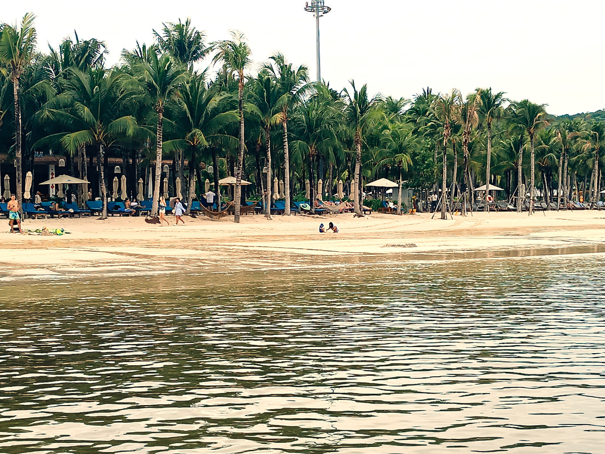 Предыстория: мы - пенсионеры - прожили На Фукуоке 40 интересных дней (посмотреть фото и почитать очерки, где мы делимся своим опытом можно по ссылке). Три дня мы провели в Sanset Town - сказочно-красивой "Итальянской" приморской туристической деревне в которой есть всё, кроме "белоснежного пляжа с бирюзовой водой". Зато из Сансет Тауна каждые полчаса курсирует бесплатный автобус к отелям на противоположной стороне острова и пляжу Кхем, о котором мы читали только восторженные отзывы. Мы решили увидеть всё своими глазами и показать вам. В конце очерка оставим две ссылки на видео северной и южной части пляжа.
