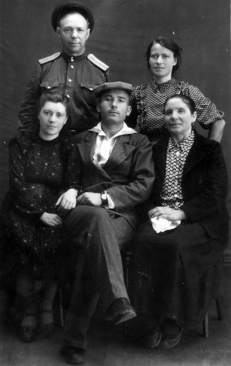 На обороте - "На долгую память сыну Михаилу, дочери Ольге, внукам Вове, Тане, свашеньке Анне Мих. и свахе Раисе М. от матери, бабушки и свахи — Ал-дры Аксентьевны. На фото сидят: Я, мой сын Гавриил, дочь Клава; стоят — сват — Михаил Матвеевич, сваха — Дора Даниловна. Незабывайте нас, взгляните и вспомните о маме, и всех изображенных на фото. 14.07. Целую Мама". Источник: отсканированная фотография из личной коллекции. #фото #капитан #Советская_армия
