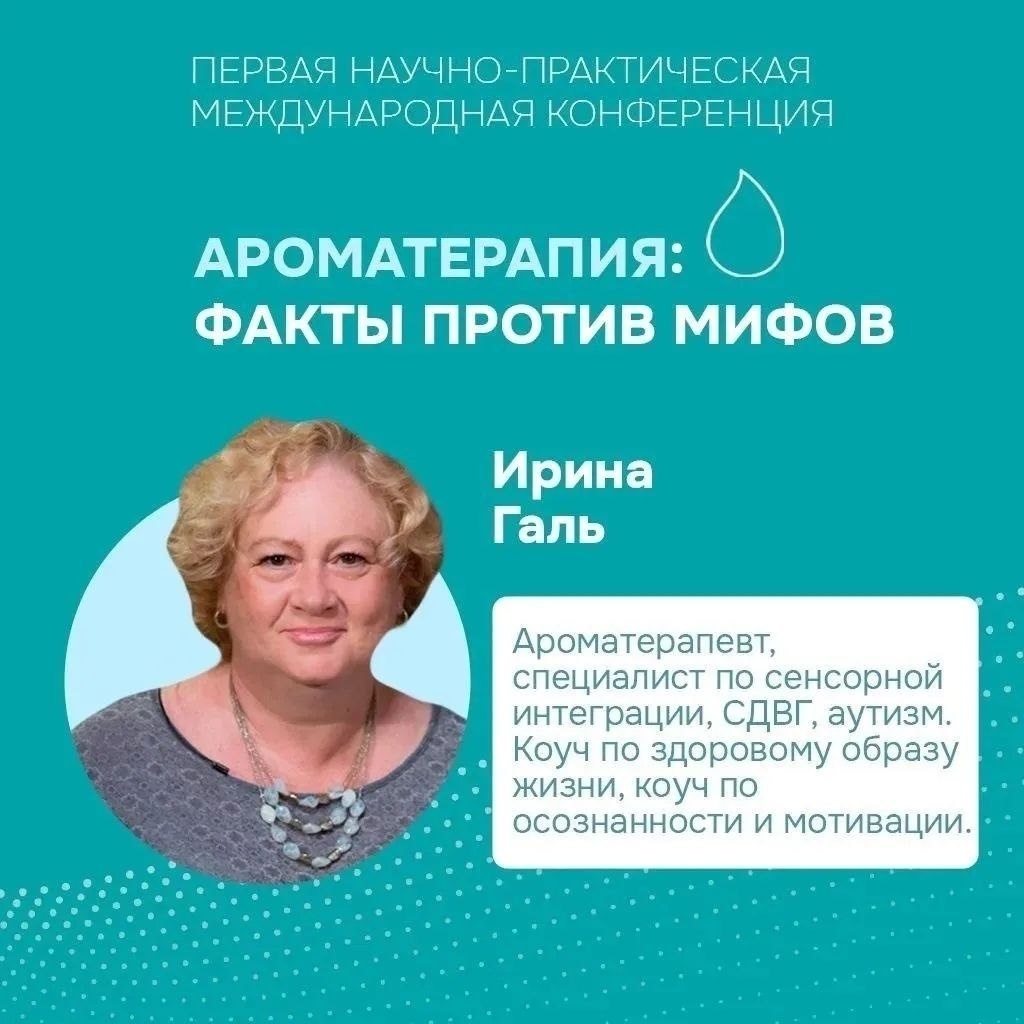 "Факты против мифов" 5 апреля в 15:00 по Мск Приглашаем всех желающих на онлайн-конференцию, где рассмотрим ароматерапию через призму объективных данных и практического опыта. В числе спикеров - практикующие врачи, диагносты, спортсмены и реабилитологи. Темы выступлений: "Причины роста аутоиммунных заболеваний. Ароматерапия для особенных людей" (Екатерина Стоцкая) "Ароматерапия как способ профилактики когнитивных нарушений" (Мария Туник) "Практика и результаты использования эфирных масел у людей старшего возраста" (Галина Серебренникова) "Микроскопия крови in vivo и биорезонансное тестирование: эффект эфирных масел у разных категорий добровольцев" (Гузель Закирова) "Масла в спорте - результаты" (Владимир Алябьев) "СДВГ. Исследования и практическое применение эфирных масел." (Ира Галь) "Эфирные масла для лечения и профилактики грибковых и паразитарных инфекций" (Елизавета Очередько) Кому будет полезно: Всем, кто хочет видеть четкую систему, а не веру в "чудо-масла" Професс