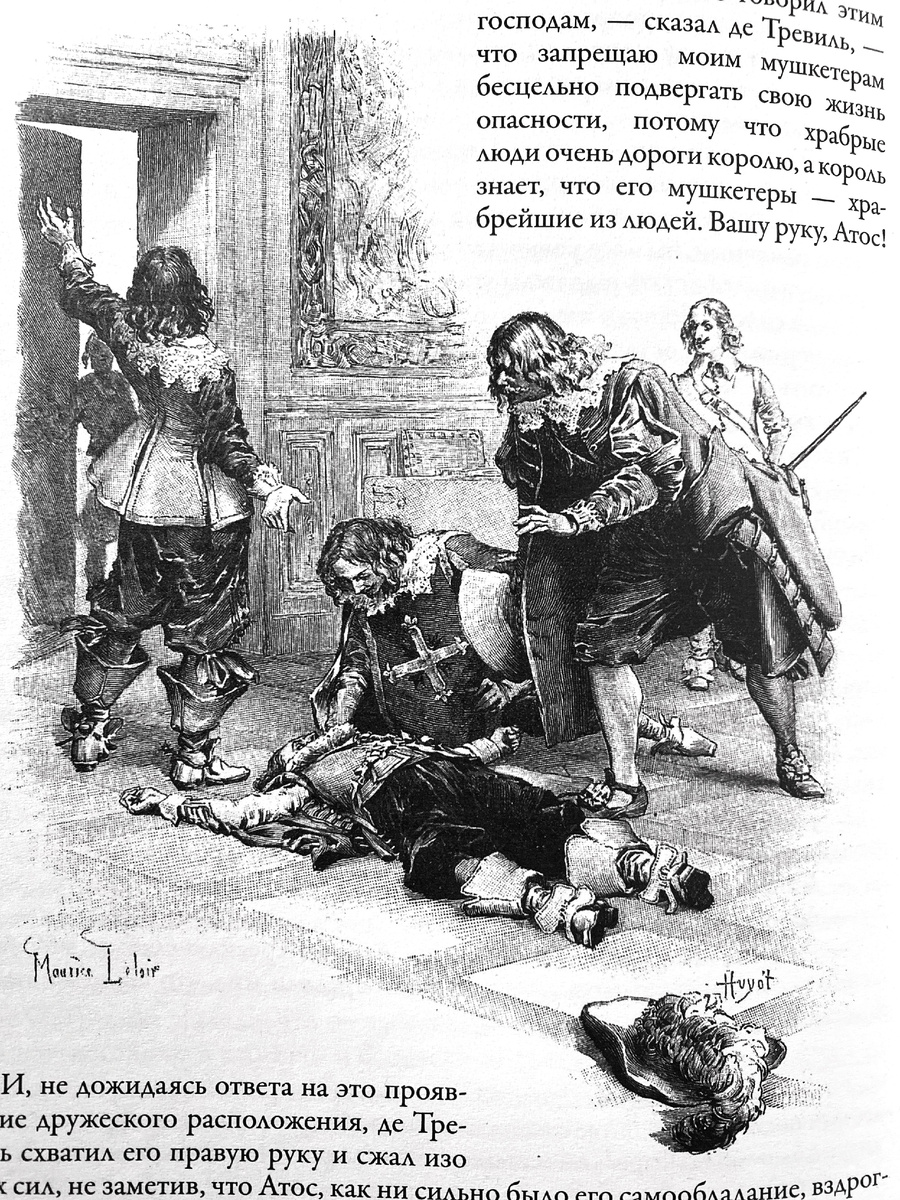 Так уж получилось, но значительную часть иллюстраций Мориса Лелуара с Атосом вы уже видели. В том числе и иллюстрацию из шапки заметки. Раненый Атос героически является на зов своего капитана, а потом падает в обморок. Возвышенно, благородно, красиво...