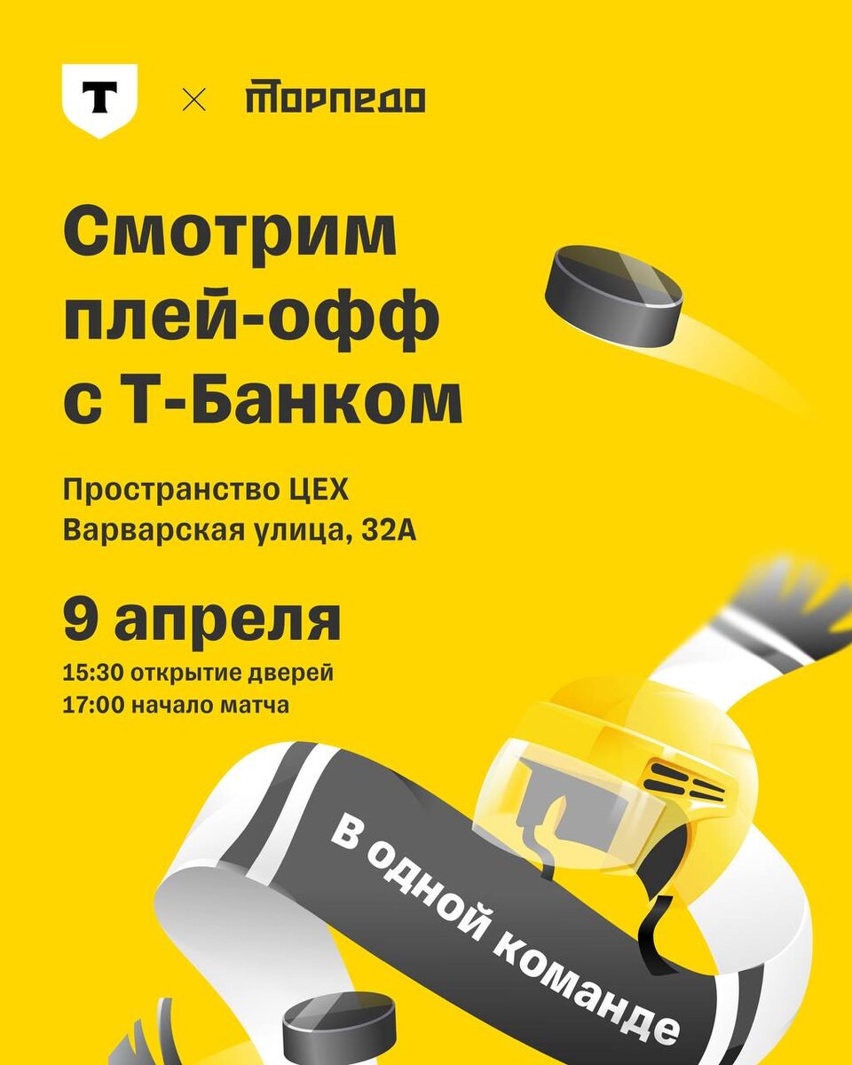 «Торпедо» вместе с Т-Банком приглашает болельщиков на особый просмотр выездного матча второго раунда плей-офф Кубка Гагарина против