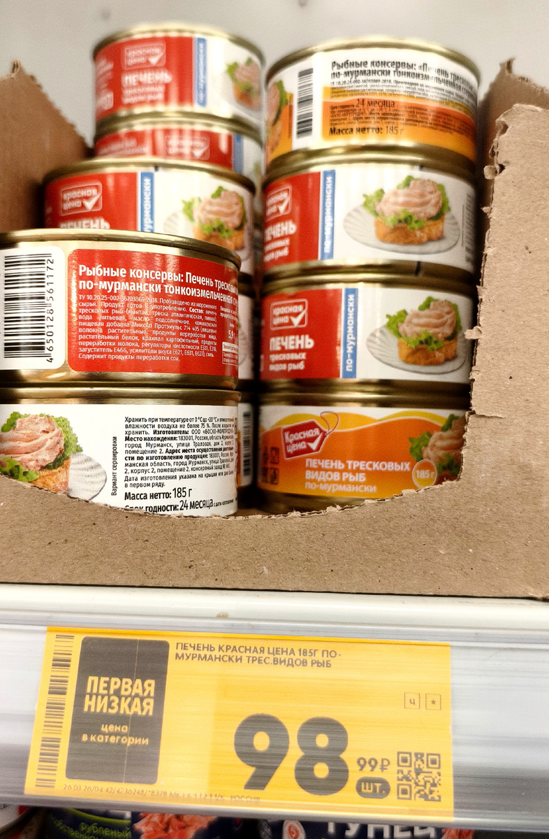 Сегодня ходил в Пятерочку и заметил печень трески от Красной цены за 99 рублей. Я печень люлю , но ее цена уже превысила 300 рублей. Поэтому сейчас приходится довольствоваться малым.
