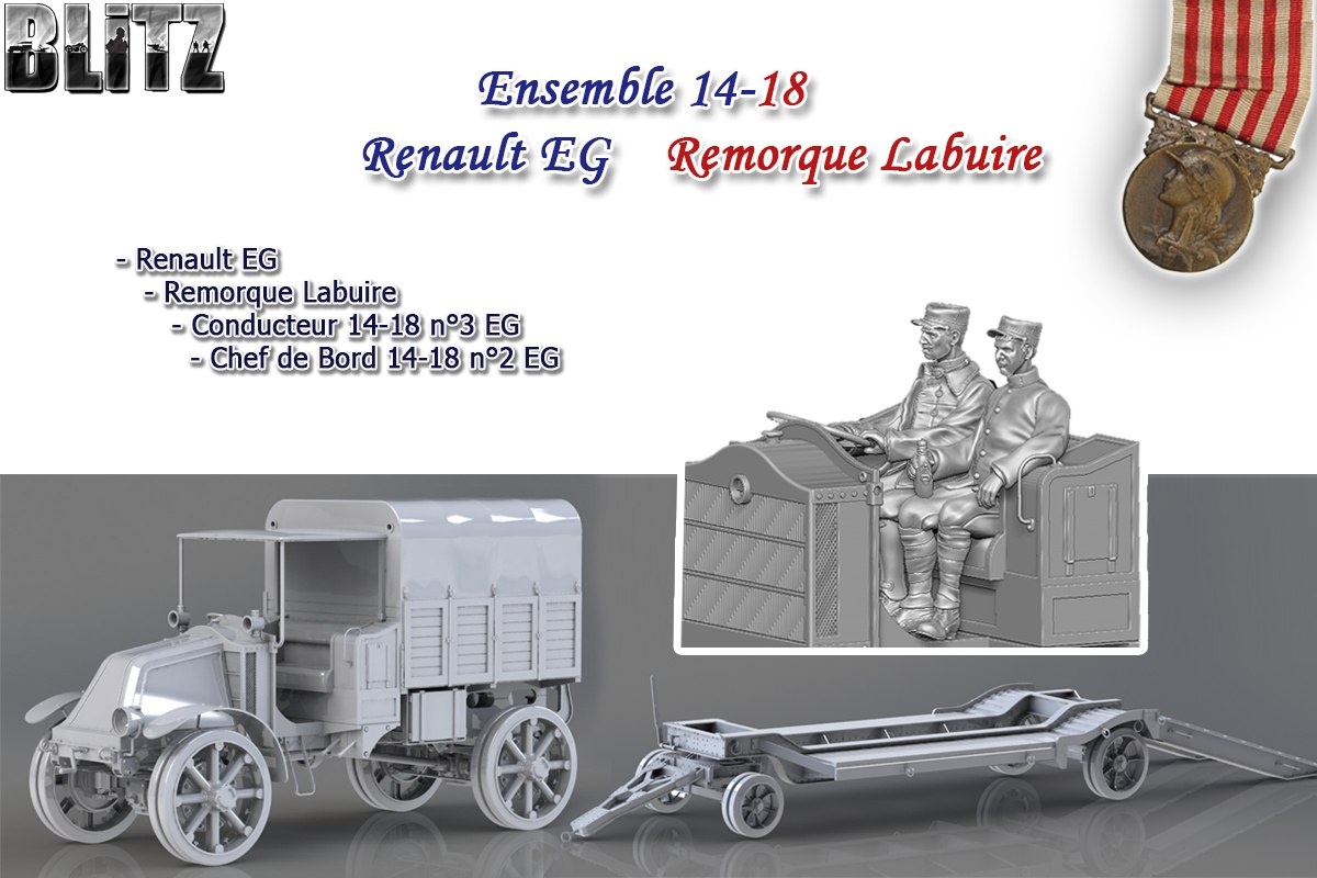 BLITZ kit выпустили модель Ensemble Renault EG с прицепом Remorque Labuire в масштабах 1/35, 1/48 и 1/72.