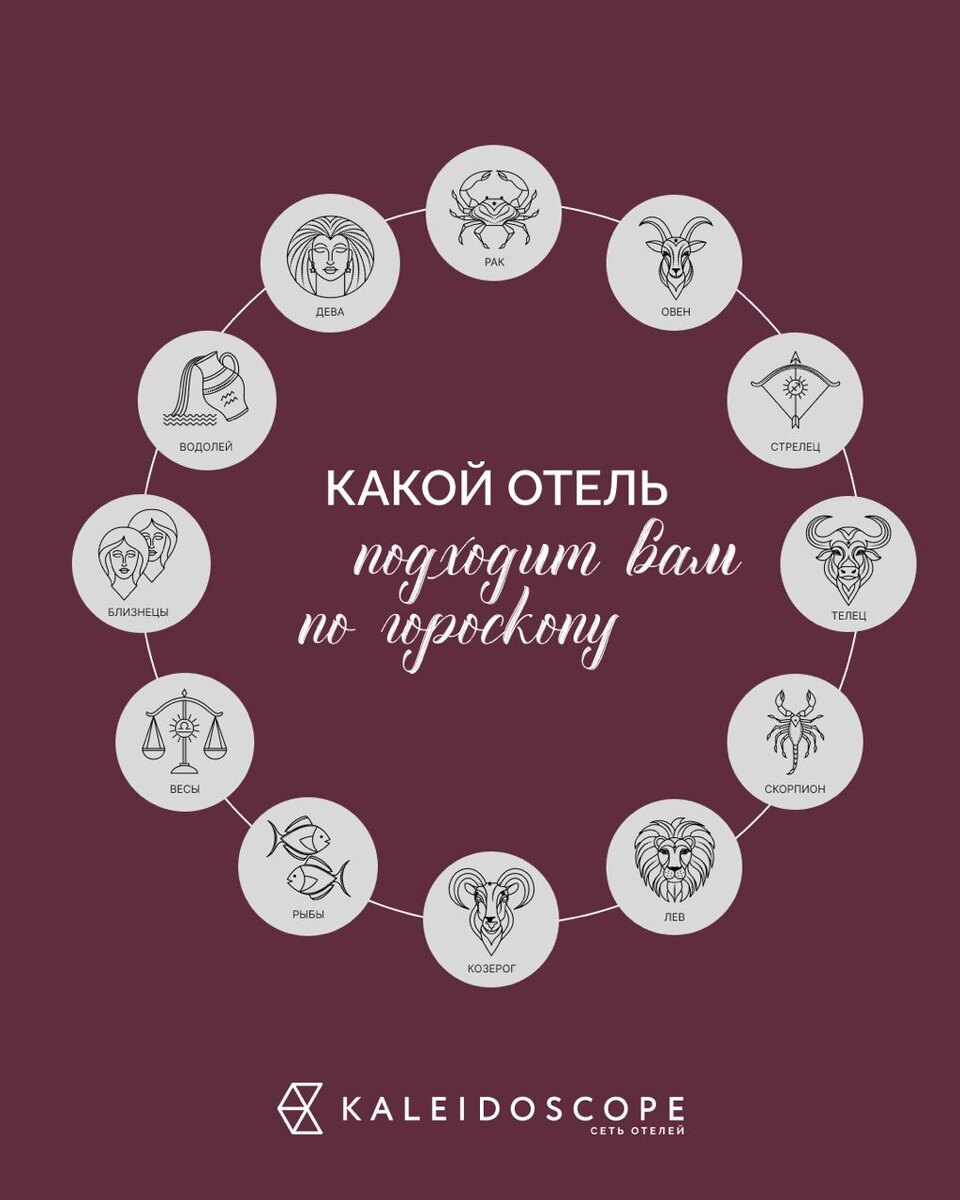 Как видите, у каждого знака есть свой идеальный отель в сети «Калейдоскоп». Но, конечно, звёзды не запрещают экспериментировать. Может быть, Овну захочется тишины «Лесной Ривьеры», а Рыбам — драйва Невского. И это тоже правильно.