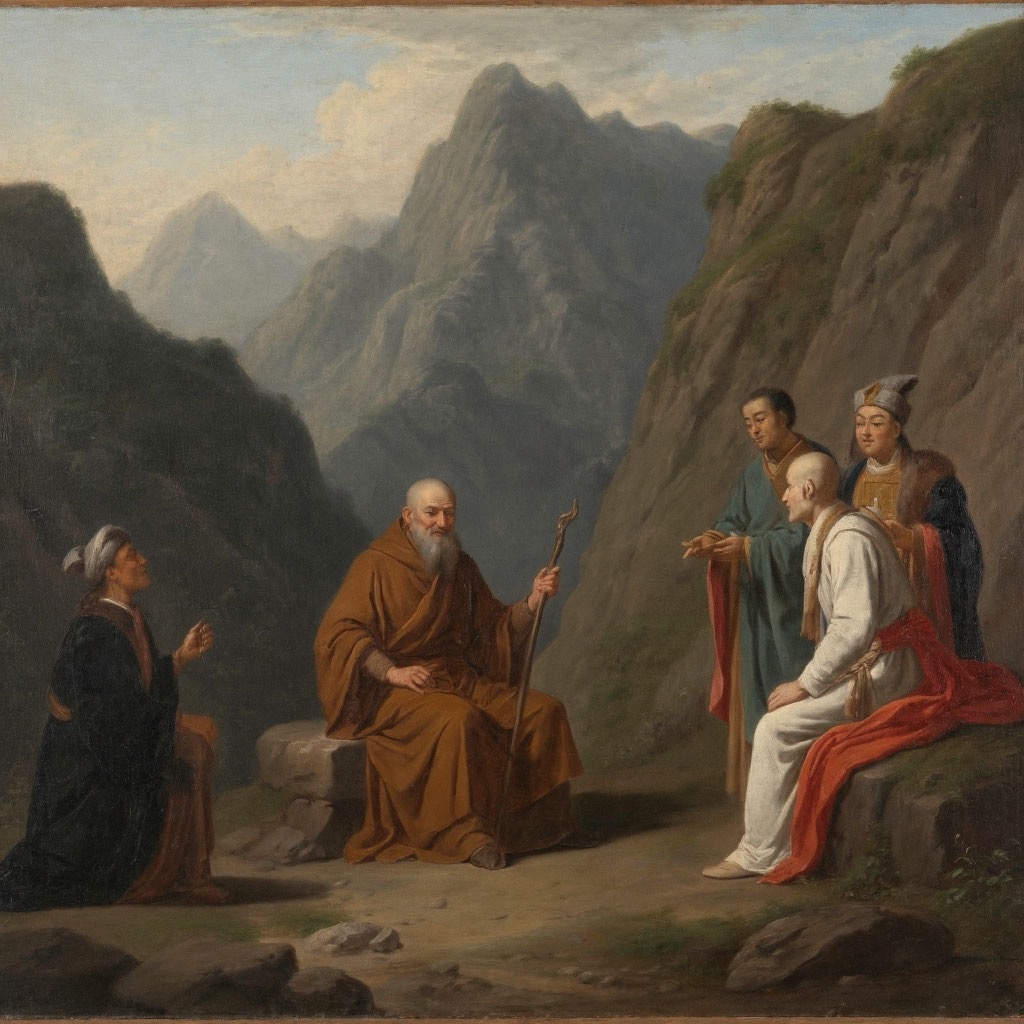 Взял монах посох свой, поклонился обители и отправился в путь — к дворцам и замкам сильных мира сего. Шли месяцы и годы, а он всё шёл и говорил с правителями, полководцами и богачами. Не обличал он их, не грозил карами, а рассказывал простые истории — о матери, потерявшей сына на войне, о крестьянине, чей дом сожжён пожаром, о ребёнке, который никогда не видел отца, ушедшего на битву.