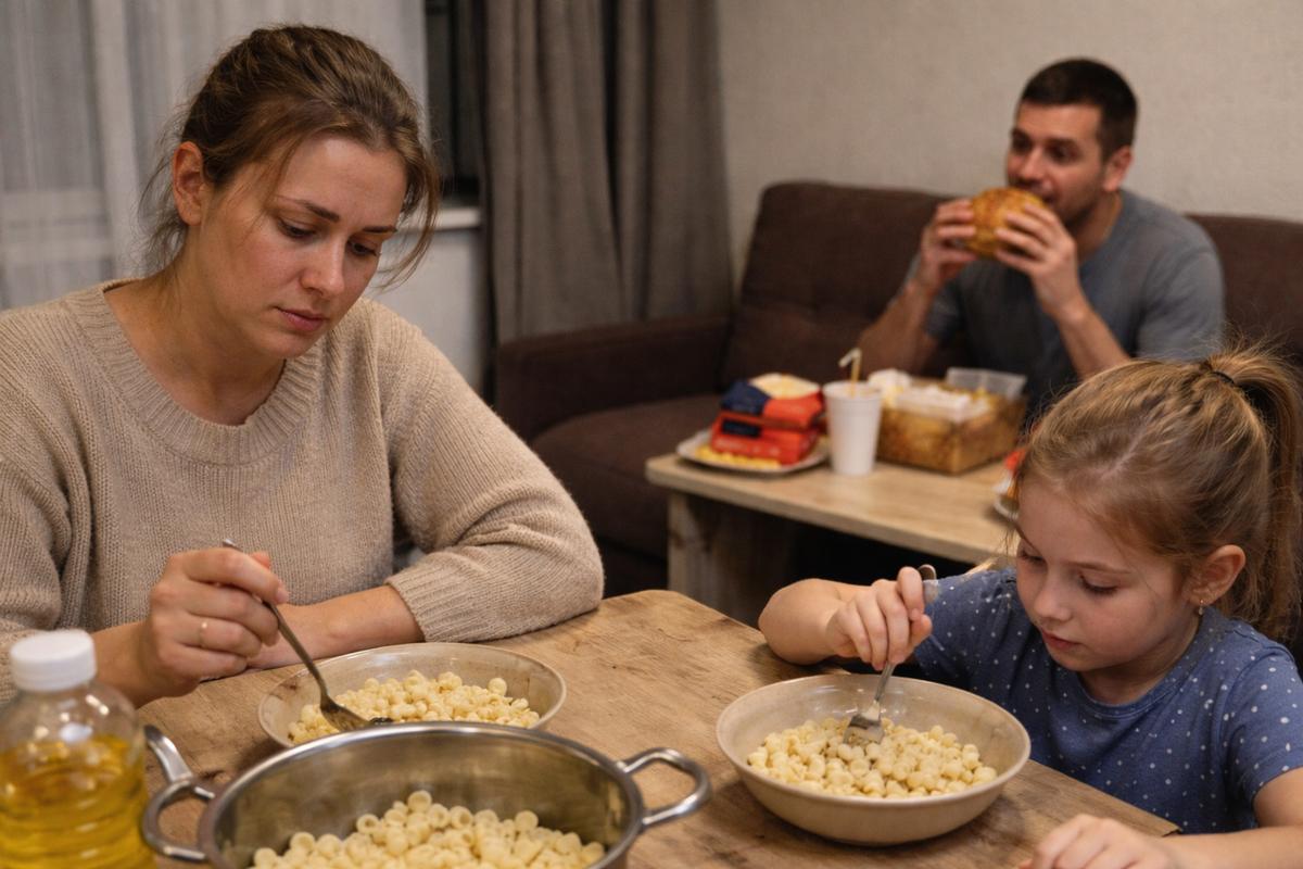 Я стояла с кастрюлей в руках и вдруг кристально ясно поняла: всё. Конец. Вот как выглядит настоящее предательство. Не громкий скандал, не измена с другой женщиной. А этот бургер, который он сожрал в одиночку, пока его дочь ела пустые макароны.