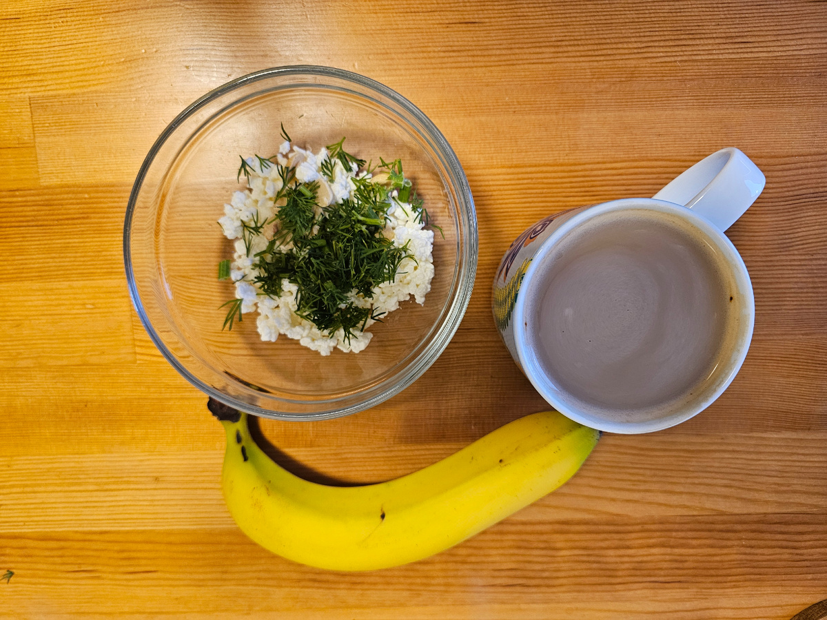 3. Остатки творога с зеленью и солью. Давно не ела такое сочетание, и мне понравилось.