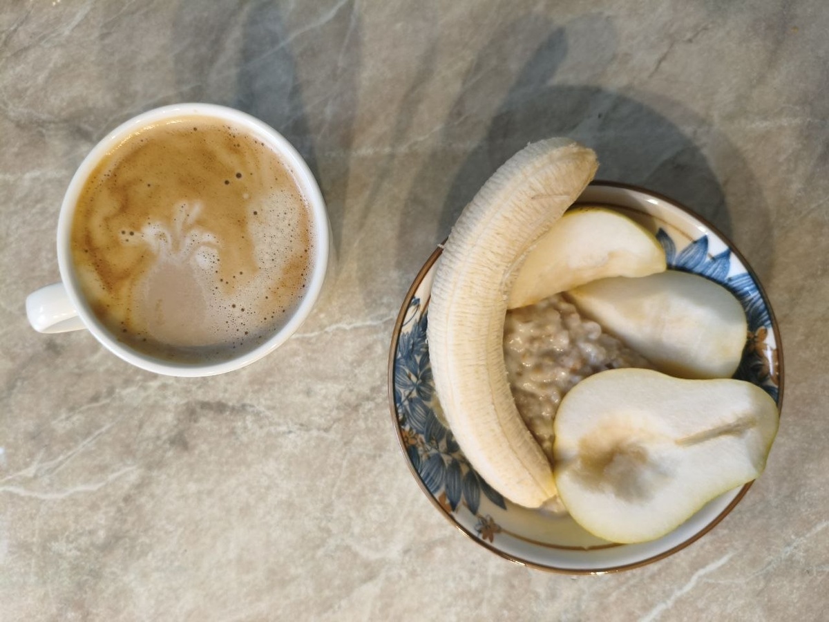 Запись пошла. 45 день, завтрак. Сегодня каша и фрукты, без мяса и белка. #жриправильно #белокжирныйуглевод #статистика