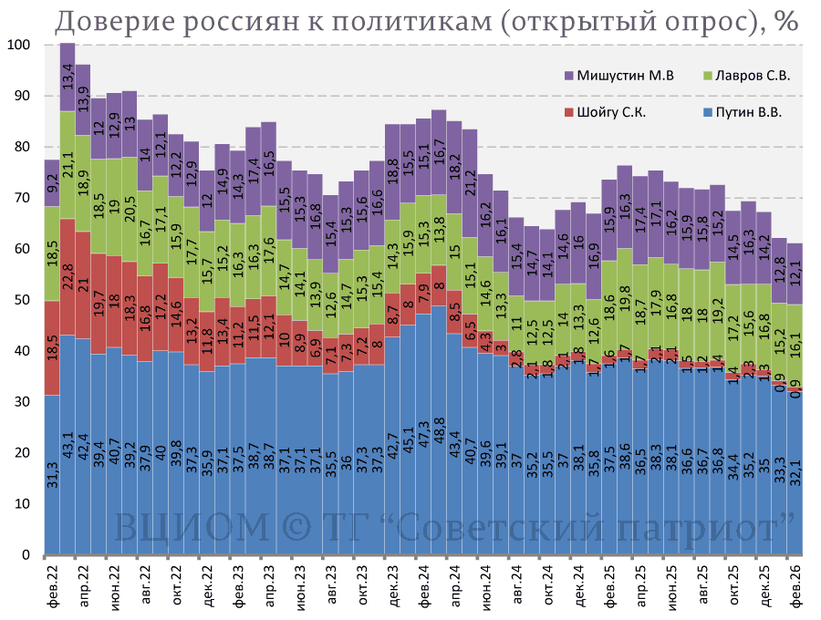 Соцопросы показывают устойчивое снижение доверия к власти в последнее время. Так, согласно открытым типам опросов ВЦИОМ, доверие к власти упало до минимального уровня с марта 2022 года: Аналогичное, хоть и менее сильное снижение показывают опросы закрытого типа того же ВЦИОМ: Тенденцию подтверждают самые свежие опросы ФОМ, показавшие резкое падение доверия к Путина с 76 до 71%, что является самым низким показателем за долгое время: Кроме того, доверие заметно упало и к Мишустину: с 57% до 52% за две последние недели. Лично я причину этого неприятного для власти явления вижу в попытке ограничить доступ россиян к популярным социальным сетям и силой их загнать в контролируемые государством, разрушая тем самым сложившиеся годами личные и деловые связи людей. Если я прав, то падение доверия россиян к власти будет только нарастать по мере усиления ограничений. Так это или нет, можно будет увидеть довольно скоро. Лайкни и перепости, если согласен и не боишься поддержать автора. Для совсем сме