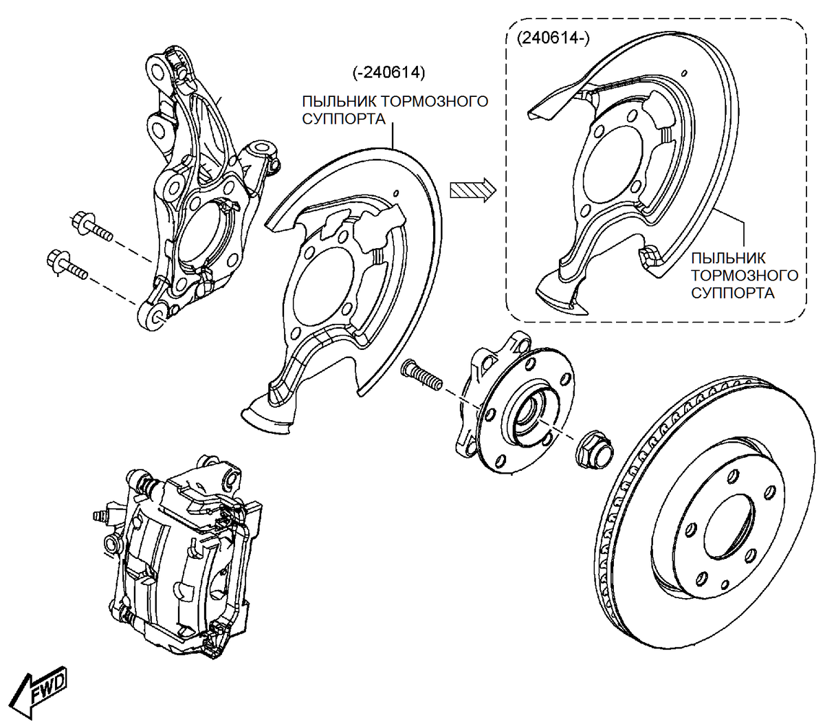2. Замените тормозные колодки и оба пылезащитных кожуха на модифицированные, следуя инструкциям в MGSS портала Mazda.