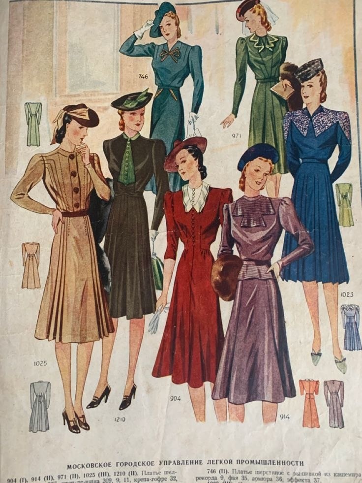 Пока я доделываю вышивку, хочется показать вам вырезки из советских журналов мод 40-х годов. Нашла на Pinterest ✨