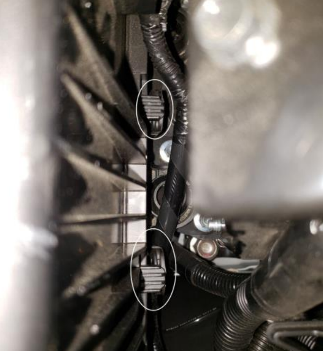 2. Перед началом стандартной диагностики осмотрите воздушный фильтр. Три (3) крепежных выступа в нижней задней части корпуса воздушного фильтра могут быть неправильно закреплены. Это может произойти случайно во время осмотра или замены воздушного фильтра. Осмотр: