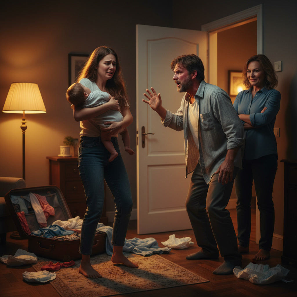 Инна долго смотрела вслед мужу. Катя устала и расплакалась, словно поняв, что простилась с отцом. Они отправились домой. Подойдя к квартире, Инна нажала звонок. Дверь резко распахнулась, свекровь выставила чемодан с вещами.