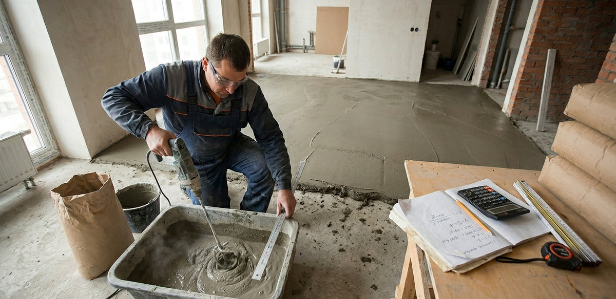 Расчет расхода ЦПС и готового раствора для стяжки пола: правила вычислений