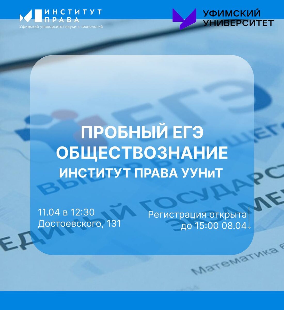 Участие в пробном экзамене дает преимущество при поступлении в Институт права УУНИТ - начисление дополнительных баллов к результатам вступительных испытаний. ⏰11 апреля 2026 г. 📍ул. Достоевского, 131 Регистрация строго по ссылке Количество мест ограничено. Успей записаться. 📲 ВК | + Буст | 📲 Rutube | 📝 Дзен | 💬 МАХ