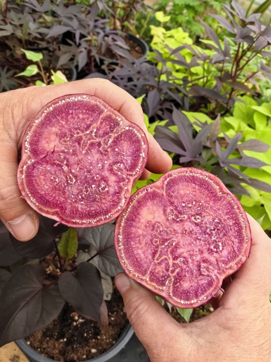 🥰. Он единственный в грядке выпирал уже с начала августа. Думали уже выскочит и пойдет сам на хранение складываться. 😂 Сейчас решили продегустировать, стоит ли такой выращивать. Стоит. На цвет запеченый может и не очень, но вкус нам понравился. Поэтому высаживаем, придумываем имя и осенью будет доступен, если нам понравится урожайность♥️ #бататчудо #новыйсорт