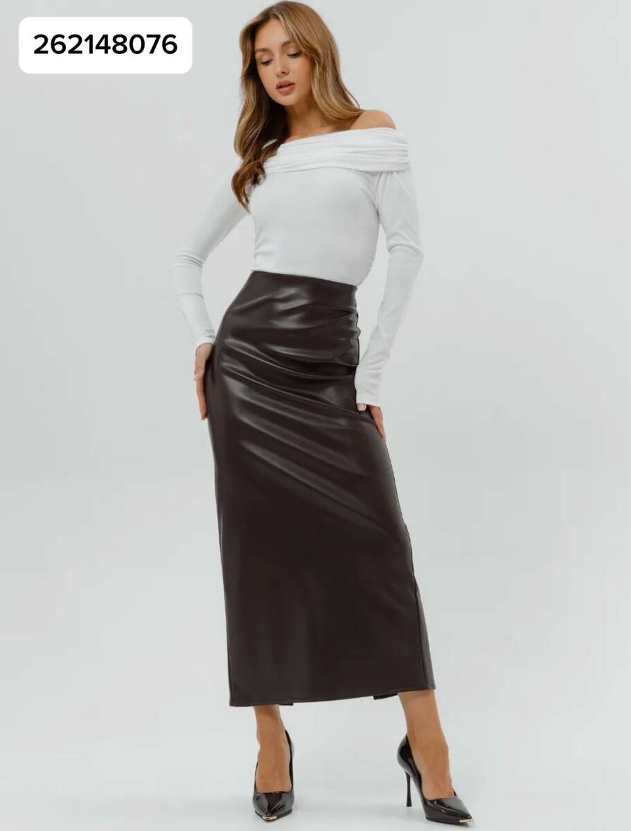 Артикул 262148076 — кожаная юбка макси в шоколадном оттенке