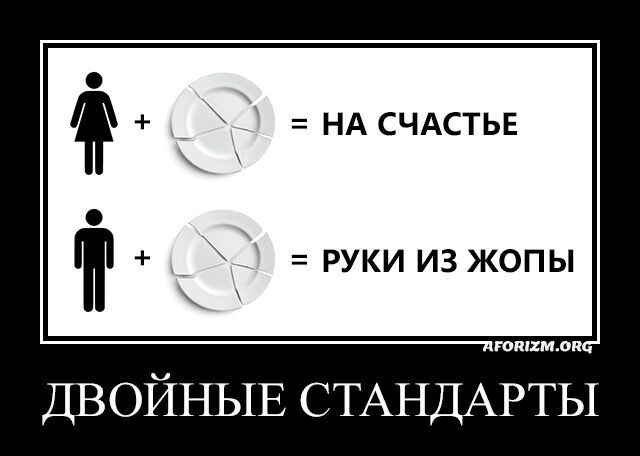 И так во всем. Он купил себе что-то дорогое – это инвестиция в себя, стимул. Ты купила – транжира, растратчица. Он промолчал – глубокий мыслител