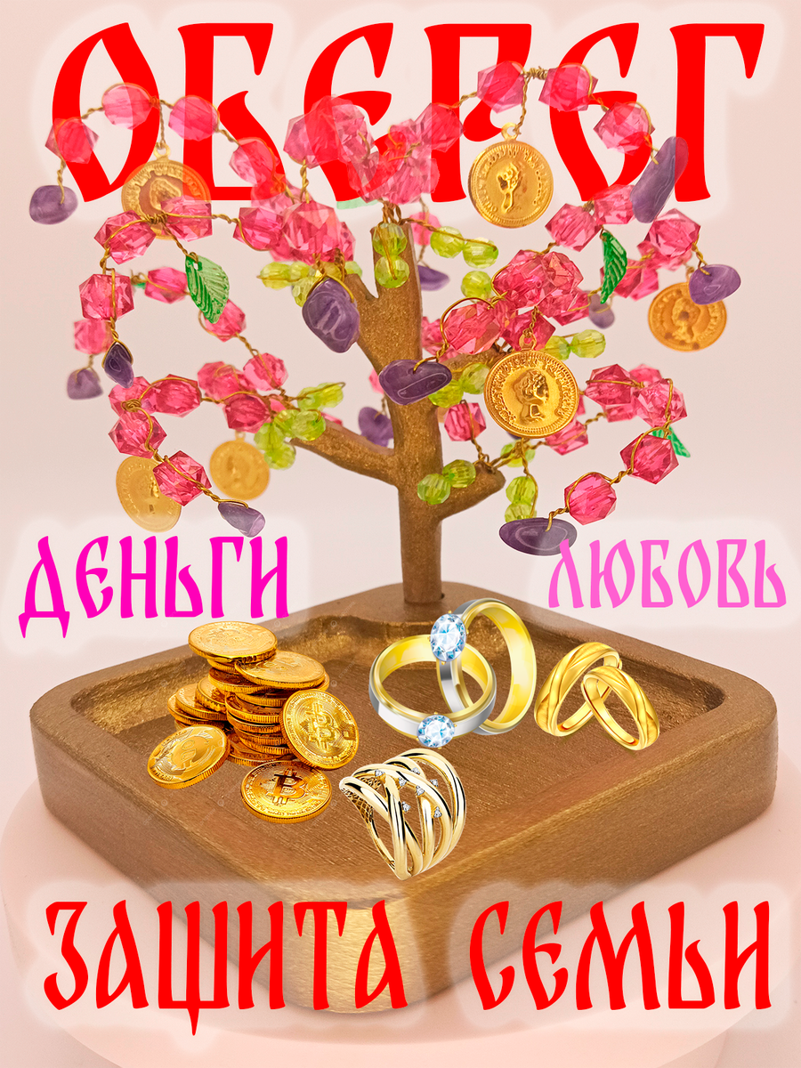 Представляем уникальное денежное дерево из натурального магического дерева бук, украшенное аметистовыми бусинами и золотой поталью на березовой декоративной подставке. 🌿💜 Каждая веточка этого шедевра — изысканное сочетание натурального аметиста, который известен своими защитными и энергетическими свойствами, и блестящих монеток, призванных притягивать богатство и изобилие! 💰🍀 Особенность подставки в том, что в нее можно положить ценные для вас вещи или деньги. 🔒✨ Это не просто удобство — это усилитель силы талисмана! Храните там свои амулеты, драгоценности или купюры, и энергия дерева начнет работать на вас вдвойне сильнее, обеспечивая приток финансов и даже любви! 💞💸 Такое денежное дерево — не только прекрасный элемент интерьера, но и мощный оберег, который поможет создать в доме атмосферу процветания и гармонии. 🌟🏡 Подарите себе и своим близким удачу с этим волшебным деревом! 🌳💫
