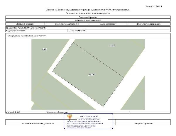 Название: Право на заключение договора аренды на земельный участок с кадастровым номером 71:15:030509:1406, расположенный на землях