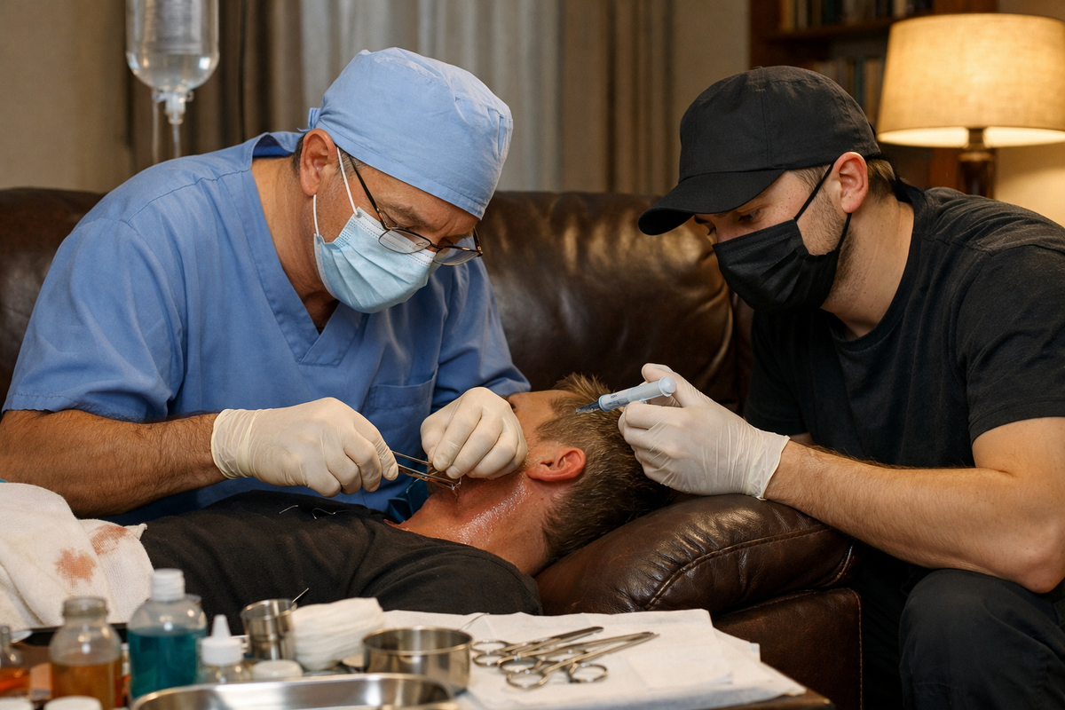 Он двигался без суеты, но с той экономностью, которая бывает у людей, привыкших к чрезвычайным ситуациям. Короткая стрижка, седина на висках, очки в тонкой металлической оправе. Одет в свитер крупной вязки и домашние штаны – явно подняли с постели. В руках – большая сумка с красным крестом, потертая, с засохшими пятнами на молнии. Человек подошел к машине, молча кивнул Призраку, открыл заднюю дверь. Посмотрел на Ерофея, на темные пятна на сиденье, на самодельную повязку из бинта, которую Призрак наспех наложил еще в коттедже, откуда спас шефа. Покачал головой. Не ужаснулся, не ахнул – просто покачал, как опытный механик, осмотревший двигатель, который починить трудно, но не бессмысленно.