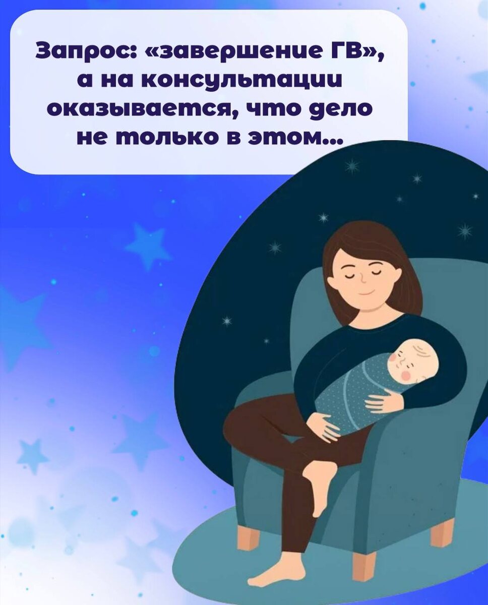 ⬇️ Мама обратилась с запросом на плавное завершение грудного вскармливания. Ребёнку было около полутора лет На первый взгляд всё выглядело как довольно частая ситуация: ребёнок много висит на груди ночью, мама устала, хочется мягко сократить кормления и постепенно завершать ГВ. Но когда мы начали разбирать, как в целом устроено питание ребёнка, оказалось, что днём он ест очень мало обычной еды 💭 По сути, его рацион во многом состоял из хлебцев, фруктовых палочек, иногда творожков - и практически без нормальной, более сытной еды с общего стола И тут стало понятно, что ночные кормления - не отдельная проблема. Они были частью общей картины. Если ребёнок днём недополучает калории, если в рационе мало сытной обычной еды, то ночью он вполне может добирать это грудью То есть получается замкнутый круг: днём мало ест обычную пищу → ночью часто прикладывается к груди → днём снова нет выраженного голода на обычную еду ❌ Мы тогда обсудили с мамой несколько небольших, но важных шагов: 1️⃣