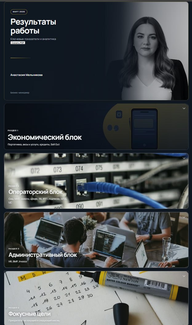 Перед вами - отчет моей ученицы. В чем разница между ней и вами? Пока большинство тратит выходные на борьбу с кривыми слайдами в PowerPoint, она «навайбкодила» себе полноценный интерактивный сервис. ▫️Здесь всё живое: блоки сворачиваются и раскрываются. ▫️Ключевые показатели выведены в удобные плашки. ▫️Даже кнопка «Скачать в PDF» работает как часы. 👉Она не программист. Она просто применила вайбкодинг - навык, который позволяет создавать сайты и ботов, описывая задачу обычными словами. Если вы до сих пор верстаете отчеты вручную, вы переплачиваете за свою работу собственным временем. Мир уже перешел на интерактив, а вы всё еще пытаетесь выровнять картинку в слайде. 👇 Хотите так же? Заходите в предзапись Регистрация сегодня - это ваш первый «ключ» к тому, чтобы перестать быть рабом рутины. Подписывайтесь на мой канал в Max