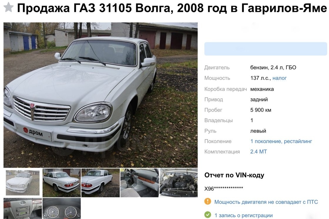 ГАЗ-31105 за 1,3 млн: «Волга» из Ярославской области с пробегом 5 900 км