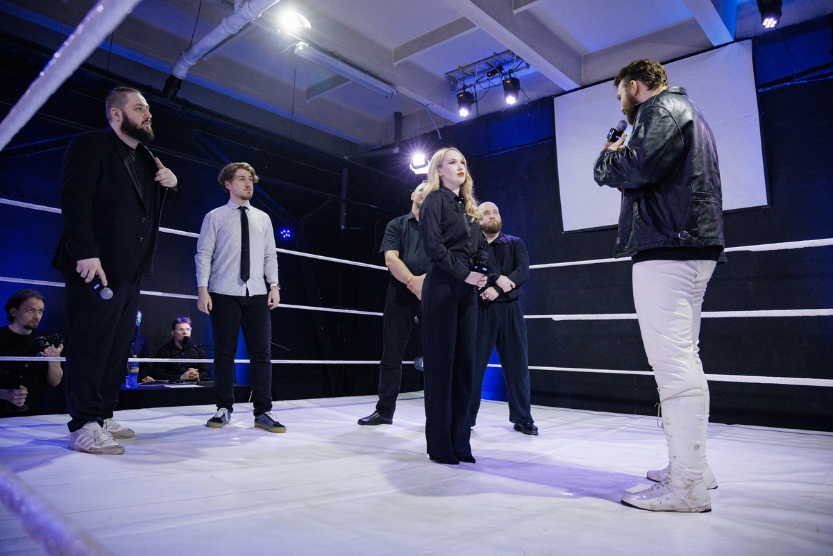 4. На ринге тем временем начинался матч Кирилла Валыло против Сергея Разумова. В этом матче рестлеры перехватывали инициативу друг у друга, стремясь показать всё, на что способны и вырвать победу у оппонента. И всё-таки выносливость и ловкость Кирилла оказалась выше, и победил именно он. После сигнала гонга соперники пожали друг другу руки и выказали своё уважение за честную борьбу.