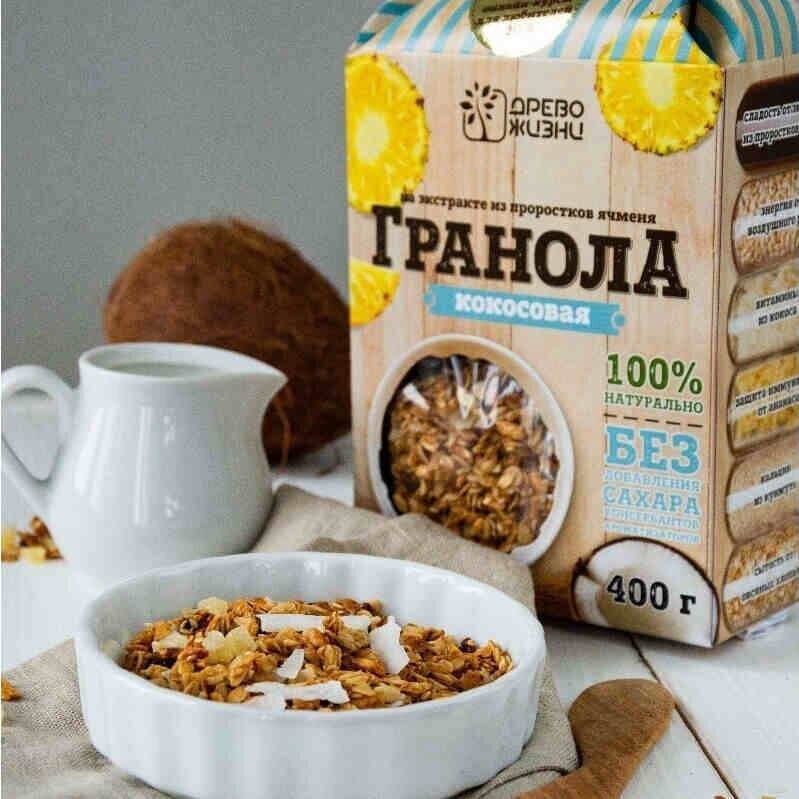 🥥Гранола Древо Жизни со вкусом кокоса и ананаса — это натуральный и полезный продукт