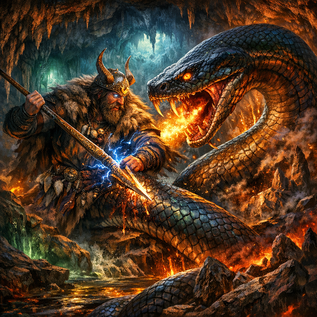 Теперь вопрос в лоб: если Велес — хозяин подземных богатств, договоров и «скота» как меры достатка, то какая роль остаётся змею? Только «чужой вор»? Слишком просто. В ряде мотивов змей — это хтонический владыка, то есть не противник подземья, а его «орденоносец», символ самой глубинной силы. И тогда подземная битва выглядит иначе: Велес бьётся не с чужаком, а с претендентом на его должность. Или — с собственным древним обликом.